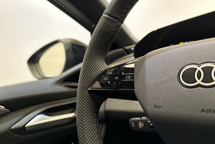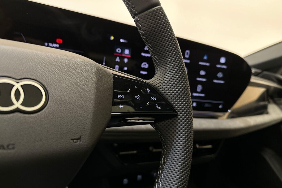 Driespaaks sportstuur, ledervrij, afgevlakt aan de boven- en onderzijde, multifunctioneel, met stuurpaddels